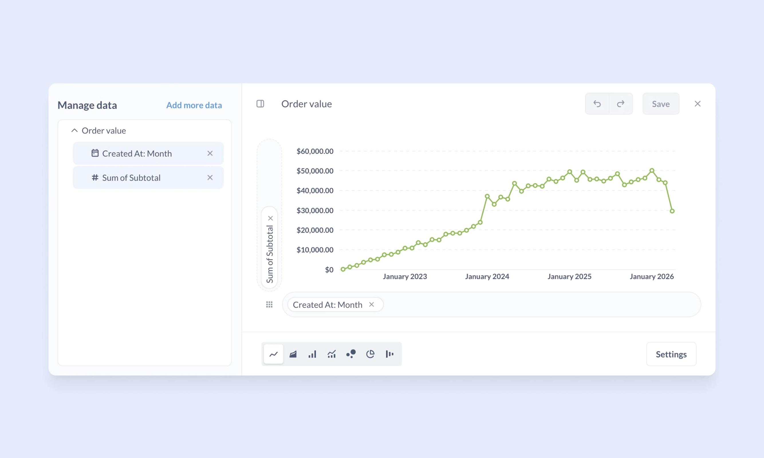Let your team and customers chat with your data, query in natural language, and explore with AI-backed tools. Connect to your database in minutes for analytics without bottlenecks.